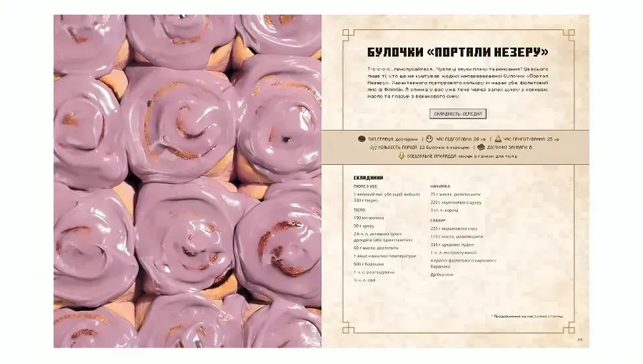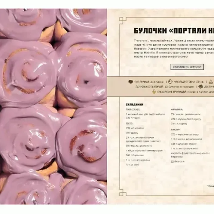 Эта кулинарная книга содержит закуски, перекусы, основные блюда, десерты и напитки, идеально подходящие для любого уровня мастерства (и типа игрока) – это именно то, что нужно, чтобы дополнить вашу кухню духом Minecraft. Так чего же вы ждете? Пора собирать, готовить и есть!