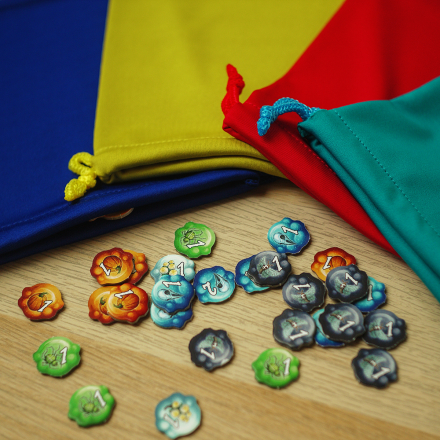 Комплект из 4-х мешочков 15х17 см к игре “Шарлатаны из Кведлинбурга” (4 цвета). Цвета мешочков могут отличаться от размещённых на фото.