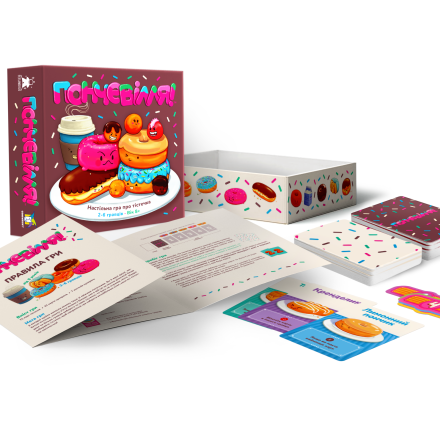 Но выбирайте внимательно! Если сразу двое или больше сладкоежек положат глаз на одно и то же пирожное, его не получит никто! Чем рассудительнее вы будете, тем больше заветных карт сможете собрать до окончания партии и больше победных очков получите! Помните про первое правило кондитеров: тот, кто умеет делиться, непременно одержит победу!