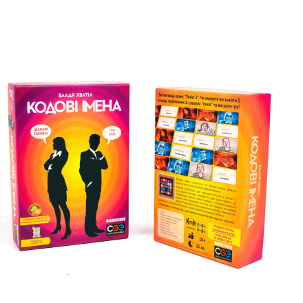«Кодовые имена» - командная игра в слова, которая строится на дедукции и ассоциативном мышлении. Игра имеет элементарные правила и увлекательный игровой процесс. По сути – это старый добрый «Minesweeper» в шпионском сеттинге с механикой разговорного типа. Правильно заданная ассоциация, раскрывающая сразу нескольких лояльных агентов, вызывает восхищение. Возможные ошибки могут рассмешить кого угодно. Игра рекомендована для больших компаний и для игры в семейном кругу. Любителям шпионской тематики стоит также обратить внимание на пати-игру «Находка для шпиона».