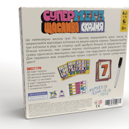 - Если она показывает число – его можно вычеркнуть на листах игроков. Для изменения числа можно использовать один или несколько жетонов Молний. Если при этом была зачеркнута линия по горизонтали или вертикали – активируется бонусный «ящик».