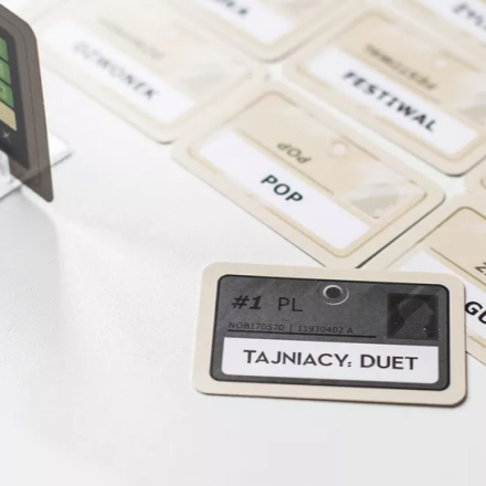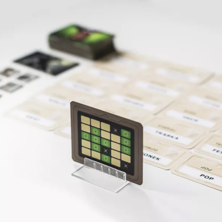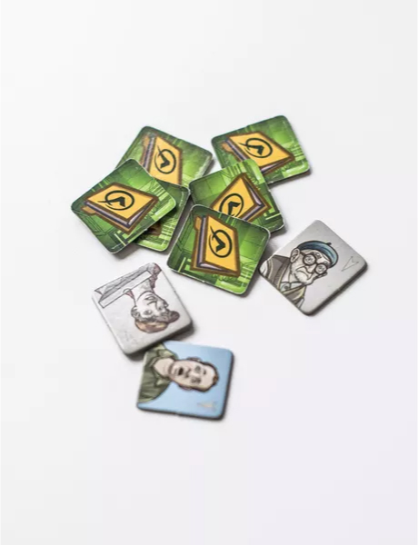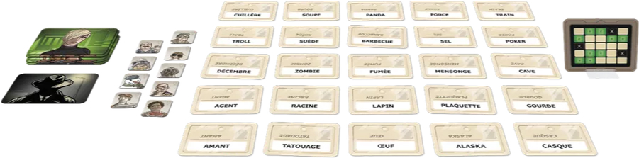 - двусторонняя карточка-ключ с обозначенными на ней агентами, мирными жителями и тремя убийцами устанавливается посреди стола. Стороны карточки отличаются. Участники видят лишь одну, свою сторону;