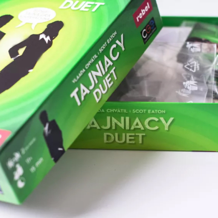 Кооперативная версия знаменитых «Кодовых имен», предназначенная для двоих игроков. В игру можно играть и большим количеством игроков, если разделиться на две команды. Базовая механика «Кодовых имен» не претерпела принципиальных изменений в версии «Дуэт»: игроки получают подсказку – слово+цифру - и по ассоциациям, которые вызывает у них заданное слово, пытаются найти на поле подходящие карточки. Если игроки найдут всех своих агентов в отведенный срок, отмеряемый жетонами времени, и при этом не наткнутся на убийцу, они побеждают в игре.