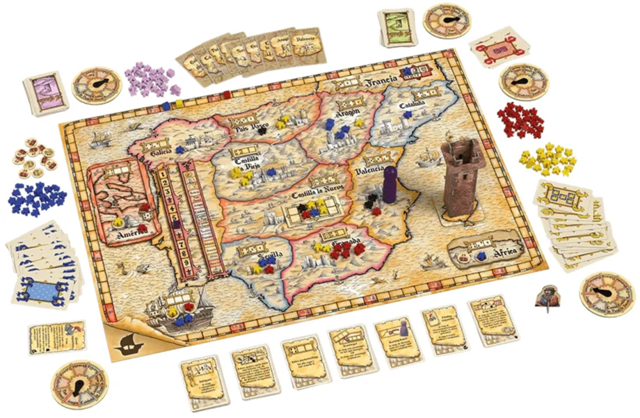 Подготовка: Разместите игровое поле на столе. Это будет карта Испании, разделенная на разные регионы. Разместите короля в одном из регионов на поле. Создайте пул карт силы, из которого игроки будут выбирать карты. Распределите деньги между игроками.