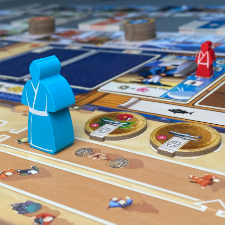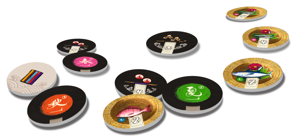 - События. Вид события всегда зависит от только что завершившегося месяца. Между сезонами вы будете обновлять сезонные компоненты, такие как жетоны рыбы, кисетов и трубок, в некоторые месяцы вы будете размещать монеты на карты не наемных мастеров, а между некоторыми месяцами и вообще будут пожары.В конце каждого из сезонов игроки также собирают зарплату с каждой карты своих мастеров (это могут быть деньги, товары или ики, победные очки), а затем должны оплатить черты каждому рабочему. Вы должны заплатить всем, кому только сможете, и сами определяете приоритет выплаты. Всех мастеров, которым не заплатили, изымают из игры.