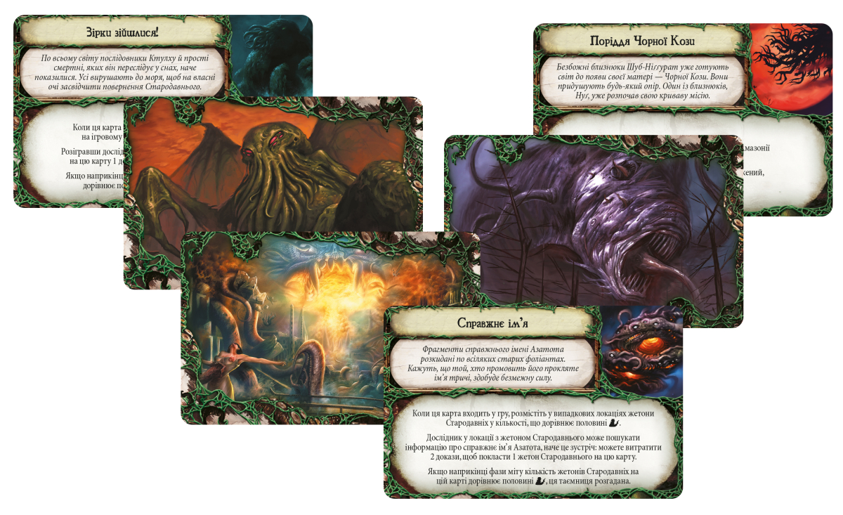 Сценарий и стиль партии зависят от выбора одного из четырех Древних. В базовой игре есть Азатот, Йог-Сотот, Шуб-Ниггурат и, конечно, старый недобрый Ктулху. Чтобы победить Древнего, игроки должны разгадать три тайны. Для разгадывания тайн нужны улики. Каждый игрок выбирает исследователя с уникальными умениями и способностями. Получив начальное имущество, создав чашу монстров, колоду мифа и разместив другие колоды, игроки применяют начальные эффекты.