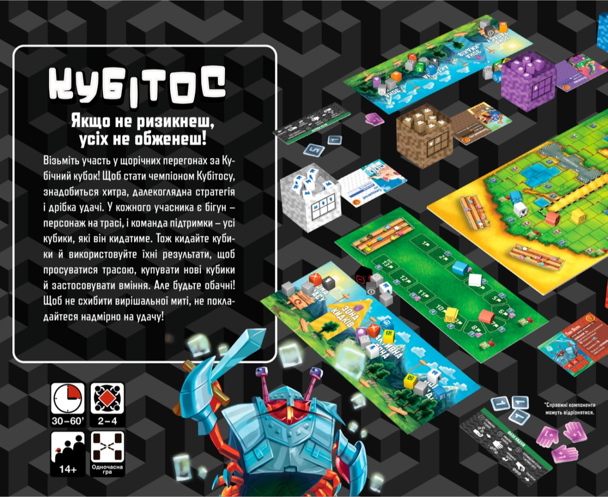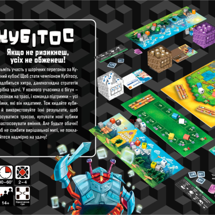 Игрокам предлагается перенестись в кубический мир Кубитоса и поучаствовать в ежегодном забеге по пересеченной местности. Каждый игрок получает фишку бегуна и стартовую команду поддержки – «слабые» светло-серые и темно-серые кубики. На протяжении партии игроки будут продвигать своих бегунов по трассе и покупать более продвинутые кубики, чтобы с помощью их эффектов первым достичь финиша.