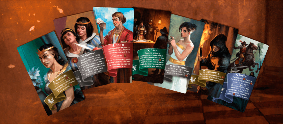 - Принц. Добавляет в ряд отложенную карту «Близнеца». Приносит 1 очко влияния.