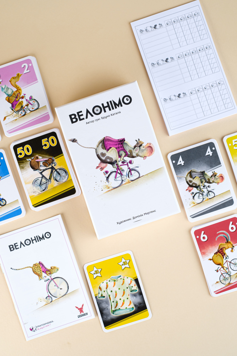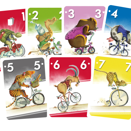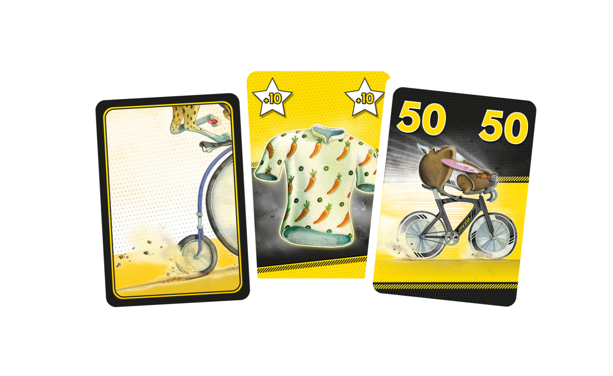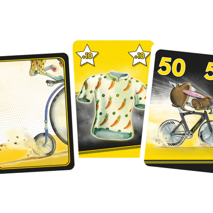 Выигрывайте этапы велогонки, чтобы получить максимальное количество очков и легендарную футболку с морковью и горошком! Игра длится 5 раундов. Каждый раунд – это этап велогонки по горной трассе с финишем на вершине. Чтобы выиграть раунд, вам нужно избавиться от всех своих карт быстрее других игроков.