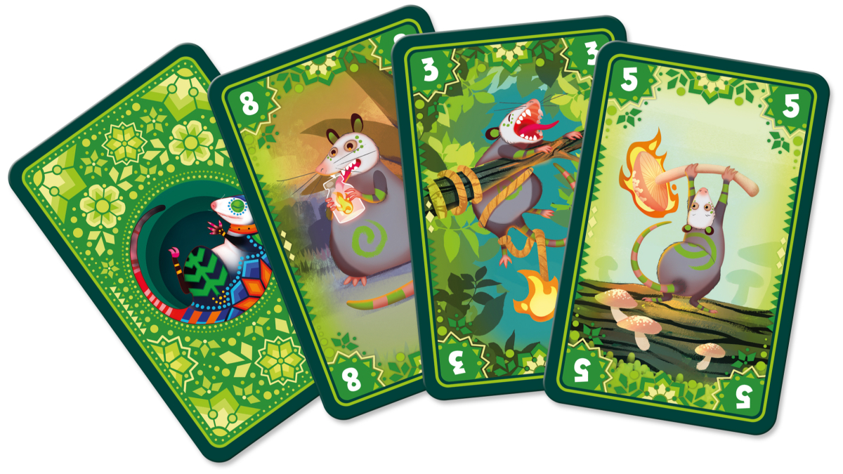 - Выбор карт игроками. В начале раунда возьмите на руку все карты под картой логова и все подготовленные карты. Стопку использованных карт можно будет добрать на руку только в следующем раунде. Выберите среди карт на руке трех опоссумов с наиболее подходящими для успеха значениями. Эти трое смельчаков остаются у вас на руке. Остальные карты положите под карту логова перед собой.