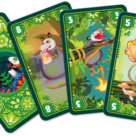 - Подготовка к следующему раунду. Если колода игуаны еще не закончилась, все участники берут на руку свою стопку логова, опоссумов, из-под которых украли карты костра, и уже готовые к игре использованные карты из предыдущего раунда. После этого переберите стопку сброса по цвету и сформируйте из них отдельные стопки использованных карт игроков.