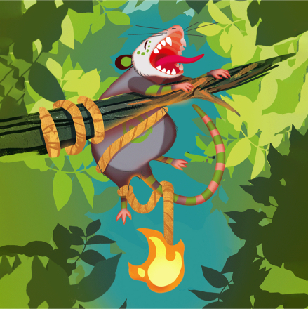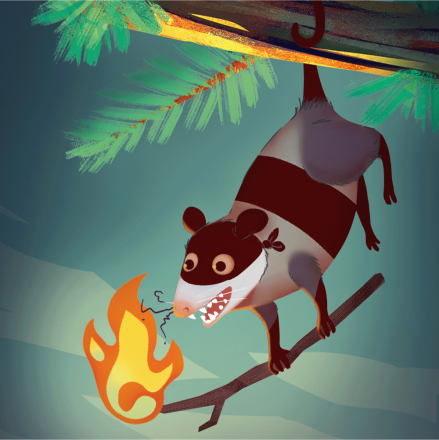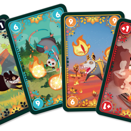 - Победа в раунде. Если ваша ставка была последней, и ход снова дошел до вас, вы получаете огонь для своей семьи опоссумов! Заберите верхнюю карту из колоды игуаны, выложите ее перед собой и накройте опоссумом, который одержал вам победу. Если перед другими игроками есть костры, накрытые опоссумами с таким же значением, что и ваш победный смельчак, вы крадете из-под них карты костров! Да, даже карту стартового костра! Расположите украденные карты под выигранную в этом раунде карту так, чтобы были видны и их символы огоньков.