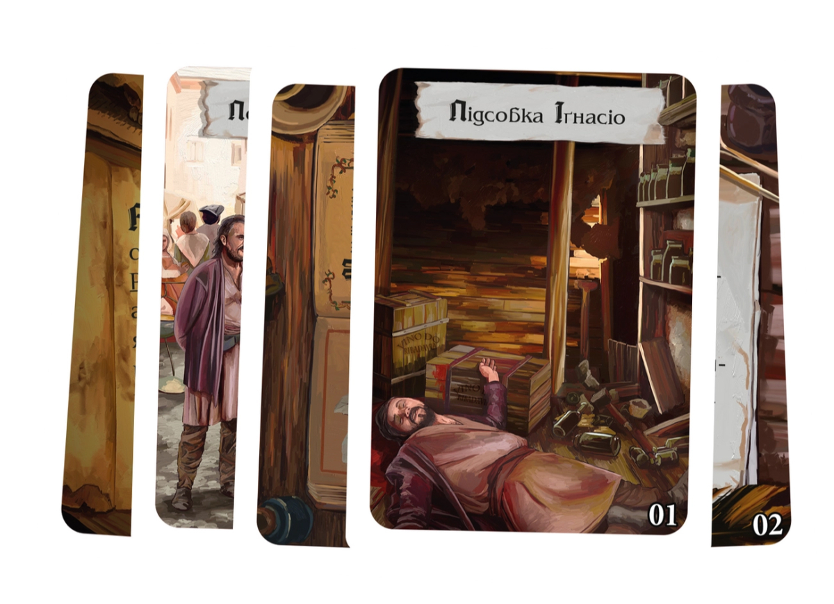 - Выложить улику. Игрок выбирает карту на своей руке и кладет ее лицом вверх в центре стола. Информация на ней теперь доступна всем.