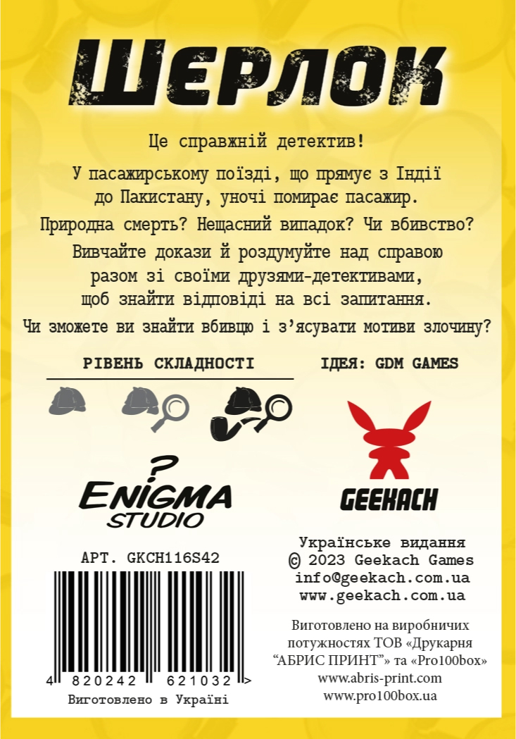 Настольная игра "Шерлок. Убийство в поезде" переносит участников в 1963 год. Действия происходят в поезде, следующем из Индии в Пакистан. По прибытии в Карачи в одном купе находят мертвого пассажира.