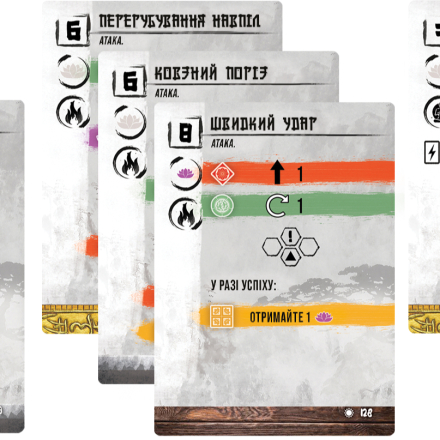 - Разыграть. Все открытые карты умений разыгрывают по порядку уменьшения значений инициативы, начиная с карты с наибольшим значением. Эффекты карт умений всегда применяют сверху вниз, по одному эффекту за раз.