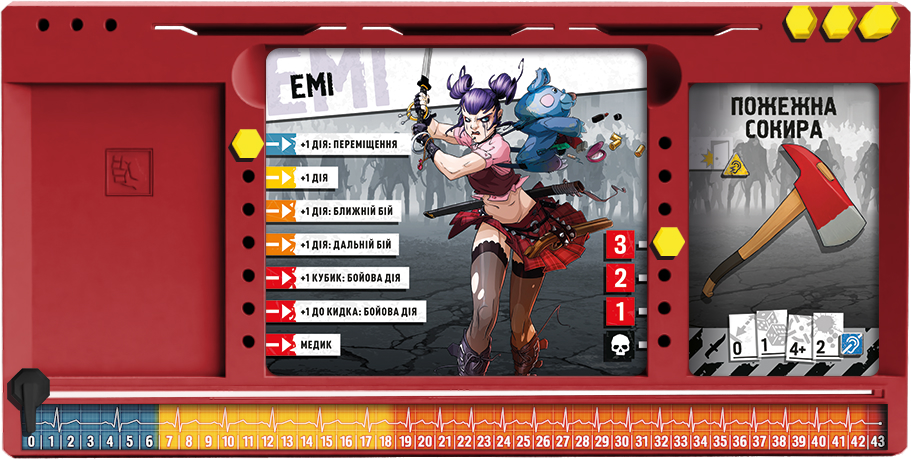 – Сыграть карту. Игрок выбирает 1 карту на своей руке, размещает ее лицом вверх в активной зоне и применяет эффект сыгранной карты.