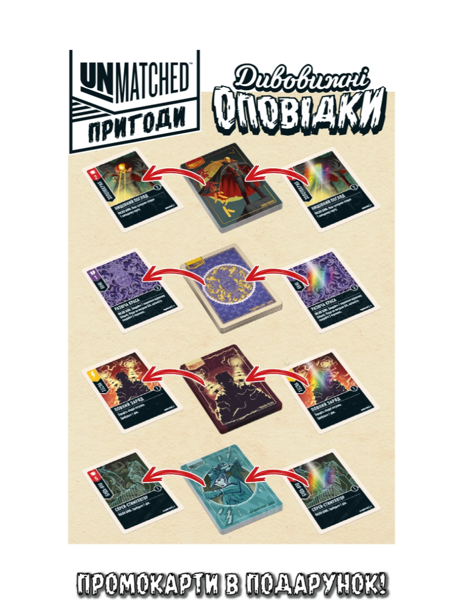 - Играть персонажами из других частей «Unmatched» против боссов из «Tales to Amaze».