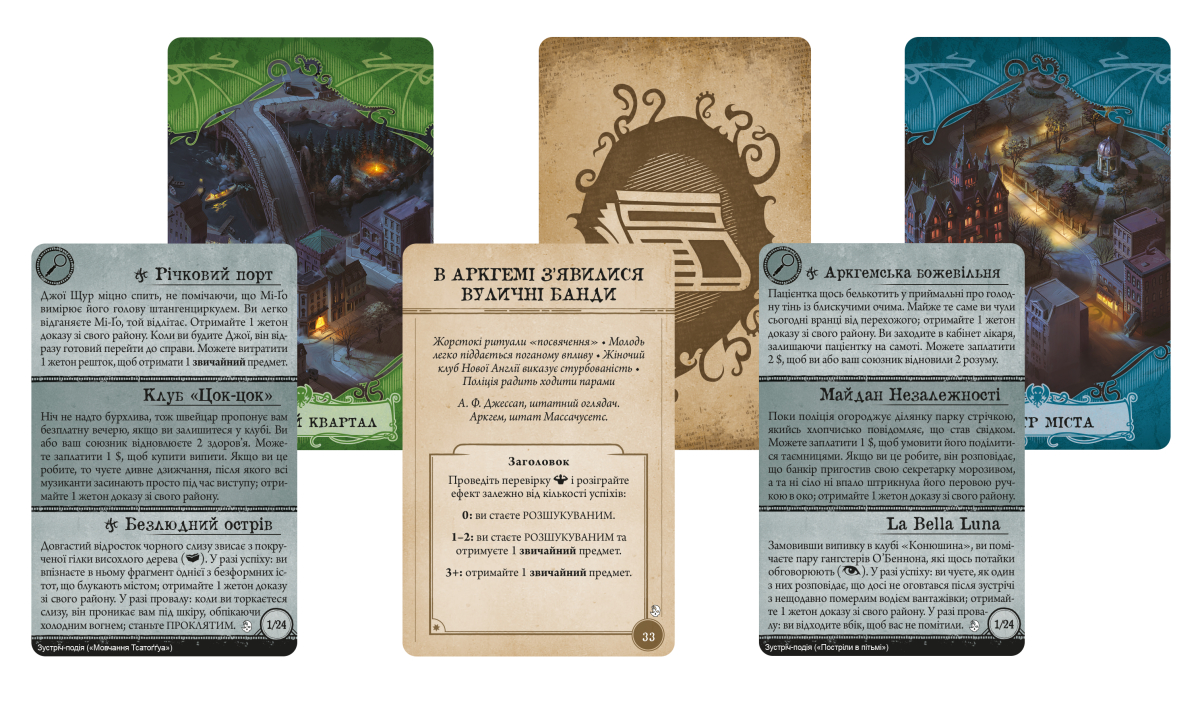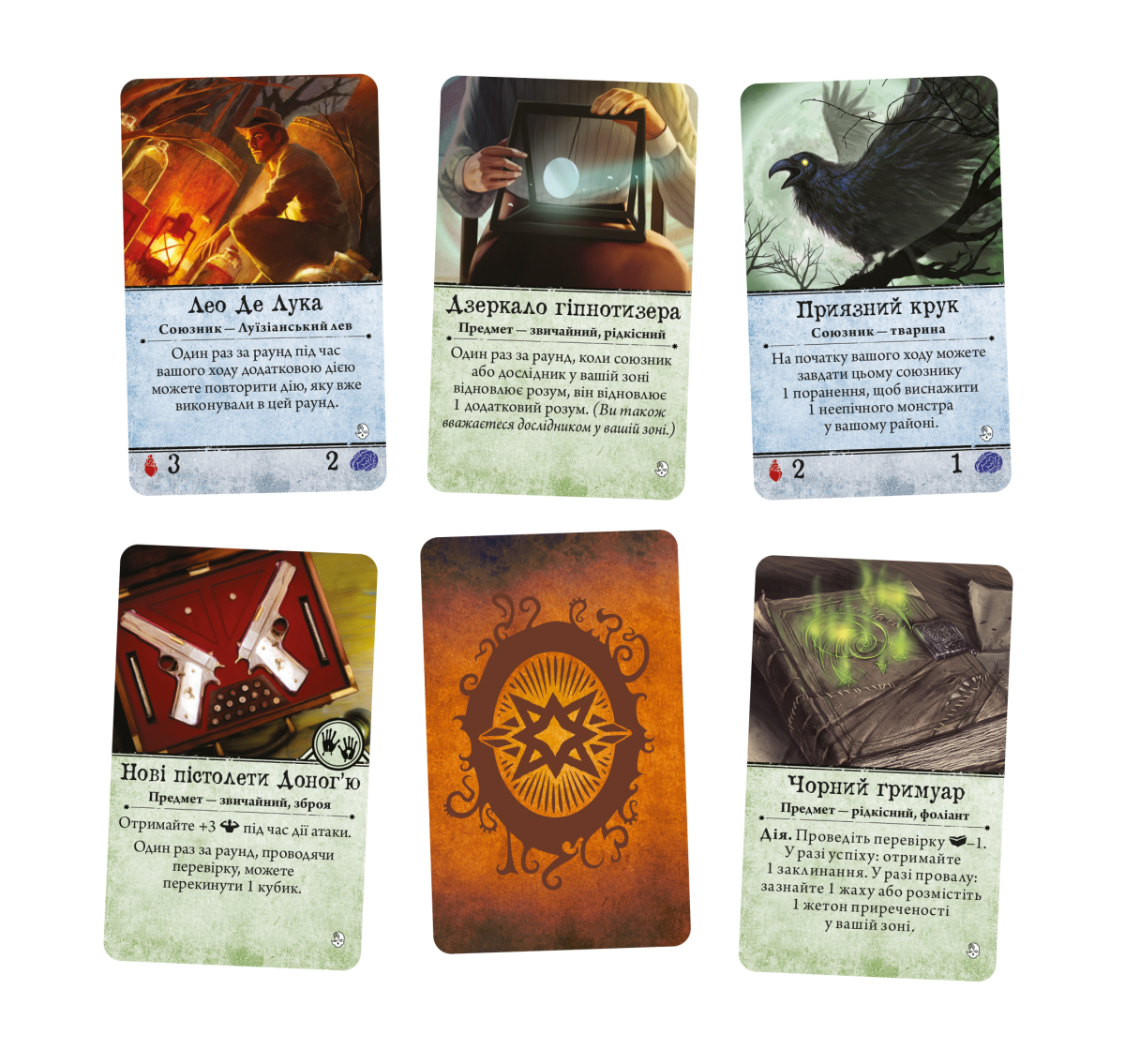 Также в комплекте новые карты встреч для различных районов Аркхэма, новые карты монстров, аномалий, заголовков, событий, архива, союзников, вещей, заклинаний и т.п. Бонусом идет новая подставка для колоды монстров. Если вы хотите разнообразить базовый «Ужас Аркхэма» и не боитесь новых испытаний, советуем купить это большое дополнение.