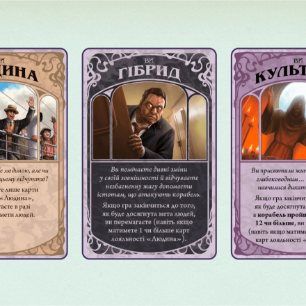 – Объявить о своем предательстве. Игрок становится открытым предателем. Теперь он может атаковать игроков-людей, разыгрывать карты предательства, легко убегать из карцера, блокировать «Действие» в тех зонах, где находится, а также делать других игроков соучастниками, передавая им карты лояльности «Гибрид».