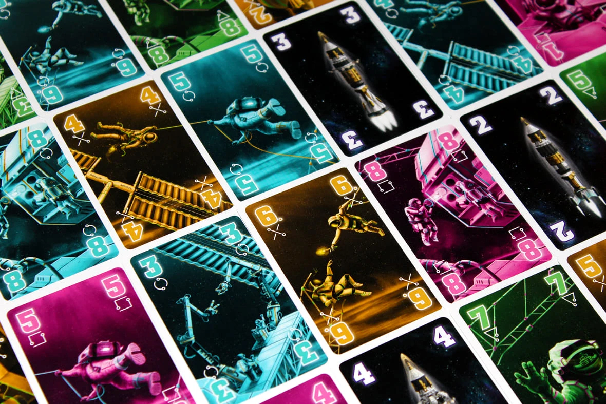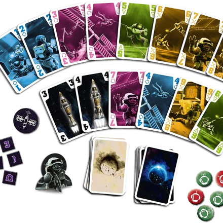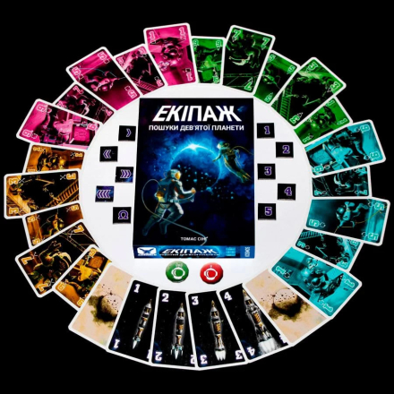 В «Экипаже» пять мастей – розовая, синяя, желтая, зеленая и козыри-ракеты. В начале партии большие игральные карты перетасовываются и раздаются игрокам поровну.