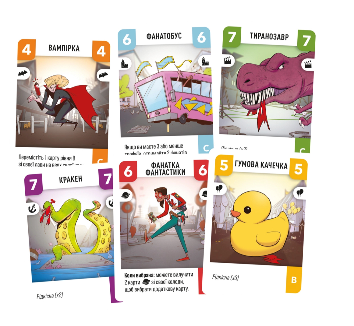 - Сформируйте запас жетонов фанатов и выставьте три лотка для карт на столе.