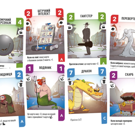 В ответ второй игрок должен атаковать: открывать карты сверху своей колоды, пока сумма их базовой силы и бонусов силы не будет выше суммы базовой силы и бонуса в карты соперника, на которой лежит жетон.