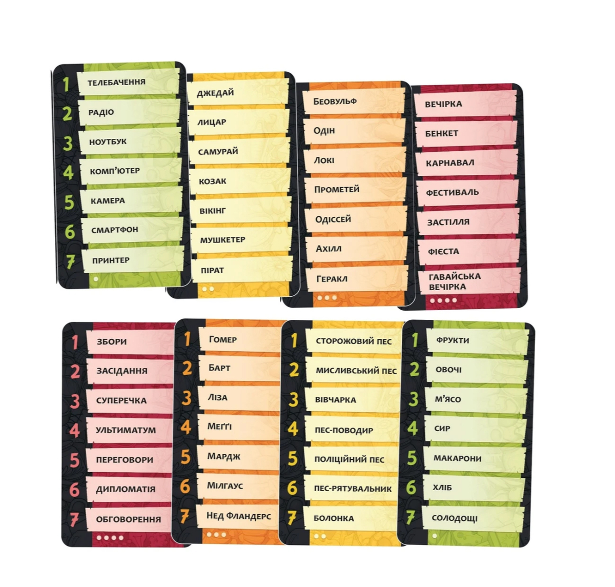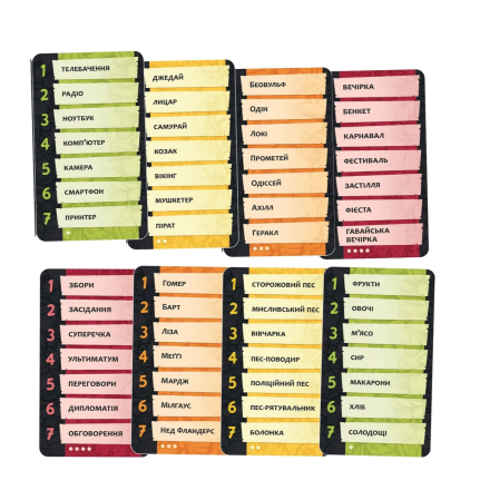 В начале раунда игроки получают секретные карты буквы и цифры. Буква обозначает карту задания, а цифра – порядковый номер слова или словосочетания которое нужно нарисовать с соответствующей карты.
