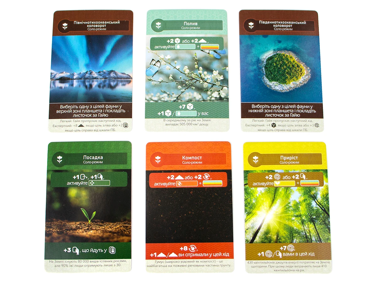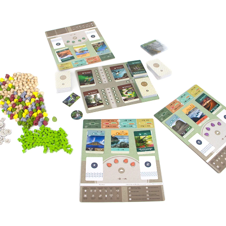 В начале партии каждый игрок получает карты острова, климата и экосистемы, определяющих стартовые ресурсы и цели на игру. Также игроки получают стартовые карты Земли и могут выбрать, какие из них оставить в руке, а какие – положить в зону компоста на своем планшете.