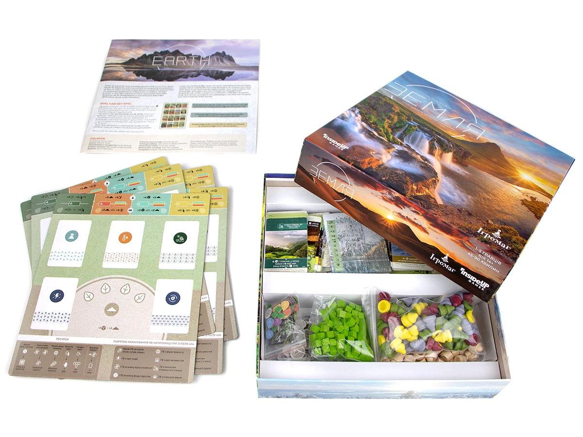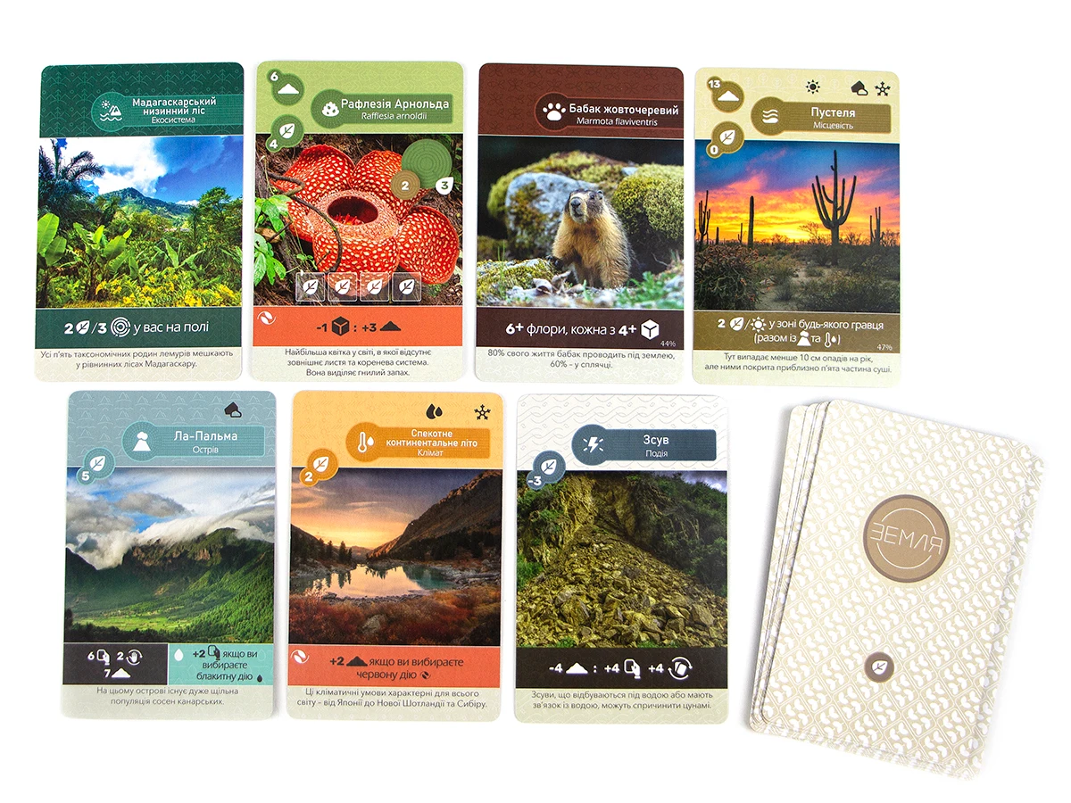 «Earth» – это игра на построение карточного движка с несложными правилами, но множеством победных стратегий. Уникальные карты позволяют создавать неповторимые комбинации и синергии в необъятной экосистеме животворной Земли.