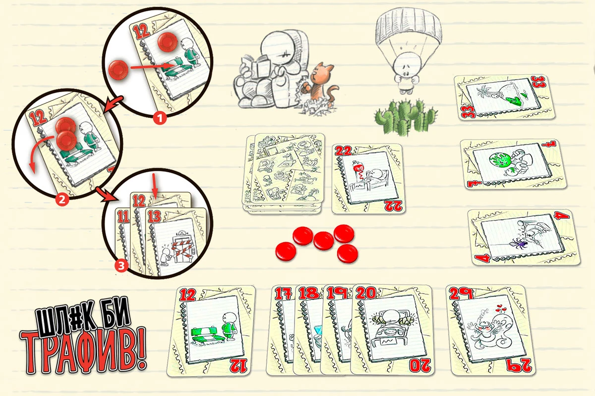 Гениально простой карточный филлер с механиками проверки удачи, ставок и сбора сетов. Настольная игра «No Thanks!» была разработана в 2004 году. В 2005-06 годах она становилась номинантом конкурсов «Kinderspielexperten», «Spiel des Jahres», «Tric Trac», «As d'Or», «Golden Geek» и победителем конкурса «Fairplay». Автора игры, Торстена Гиммлера, Гикач знает по дуэльной настолке «Вороны Одина».