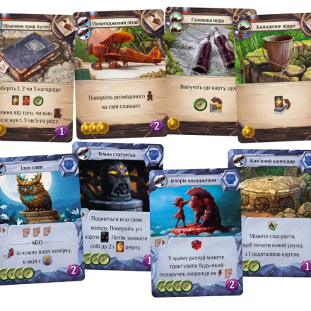 - Новые храмы – теперь вы можете отправиться в экспедицию в храм Водопадов и храм Дерева, карты которых имеют свои особенности локаций. Для игры с новыми храмами просто уложите их поверх любой стороны поля исследования.