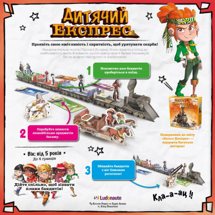 Специально для подрастающего поколения гиков давно стало доброй традицией издавать «детские версии» настольных хитов, как вот «My First Carcassonne», «Catan Junior», «Stone Age Junior», «My Little Scythe», «Scotland Yard Junior», «Alias Junior». И увлекательный «Colt Express» не стал исключением.
