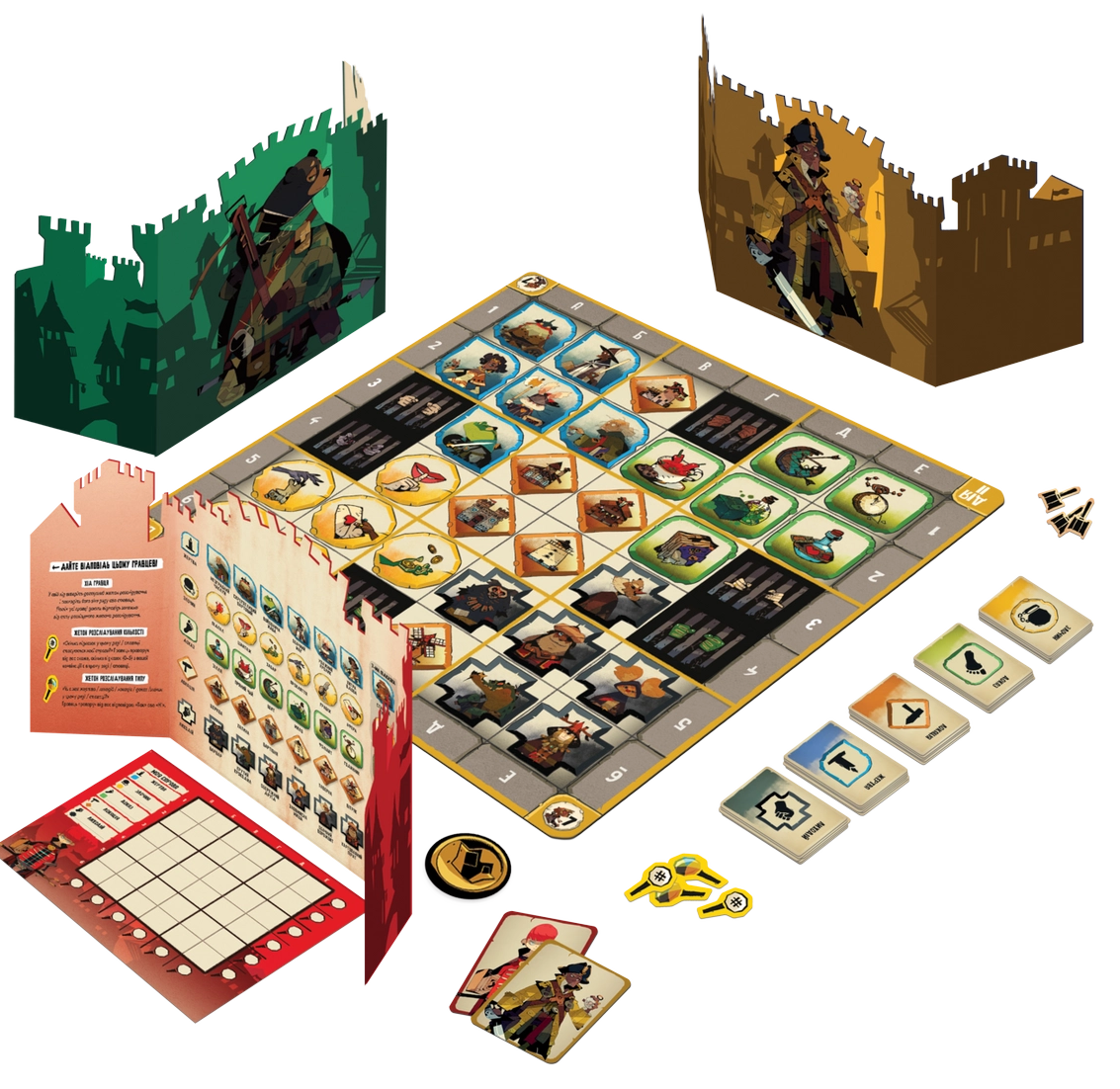 Каждый игрок «вооружается» ширмой, листом-нотатником и маркером, а также получает по одной карте разгадок из колод, участвующих в сценарии. Вместе эти карты разгадок образуют секретную комбинацию, которая является ответом для игрока слева. Игрок отмечает их на своем листе, дополняя примечаниями «нет подсказки» с планшета сценария. Кроме того, согласно указаниям выбранного сценария, игроки могут получить карты персонажей, обладающих особыми способностями.