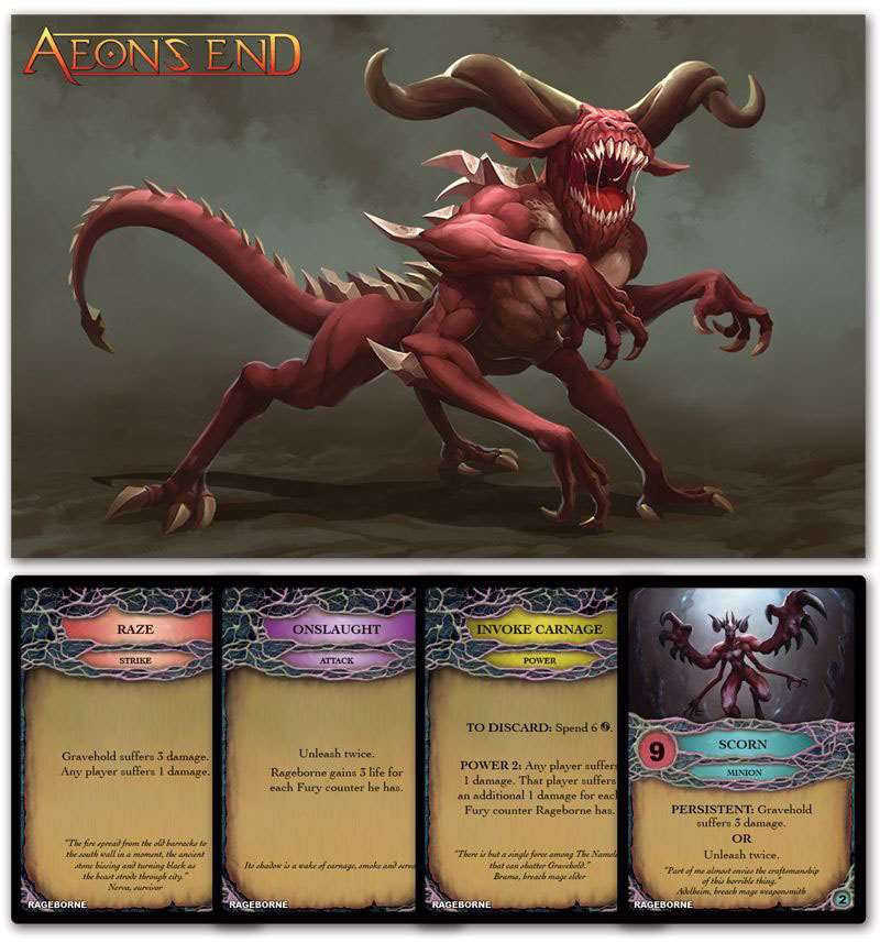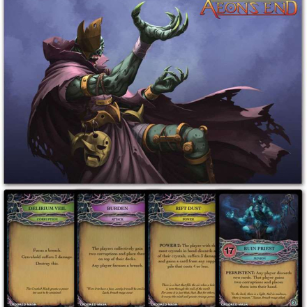«Aeon’s End» это колодостроительная настольная игра для 1-4 игроков, действие которой происходит в фэнтезийном постаппокалиптическом мире. В этой кооперативной игре участникам предстоит перевоплотиться в роли магов, которые с помощью могущественных заклинаний будут защищать последний бастион человечества – город Грейвхолд от полчищ кровожадных монстров.