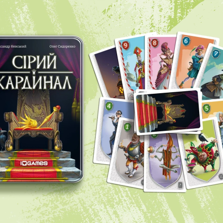 «Серый Кардинал» - это быстрая игра-филлер от украинских авторов. Механика данной игры базируется на проверке удачи и сборе сетов. В свой ход игроки берут карты из колоды и выкладывают их поочередно лицом вверх, пока числовое значение одной из них не превысит числовое значение предыдущей. Если такое случится, все открытые карты «сгорают». Когда игрок открывает две одинаковые карты или уменьшает номинал следующей карты до номинала предыдущей, он может заставить любого соперника сбросить одну карту. При самом большом успехе игрок получает 5 карт и раскладывает их по соответствующим стопкам перед собой. Разумеется, у игрока всегда есть право остановиться на меньшем количестве карт. Также игроку позволяется обменять полученные карты на одну карту оппонента. Уже имеющиеся придворные в стопках дают возможность игроку проводить определенные манипуляции при открытии новых карт.