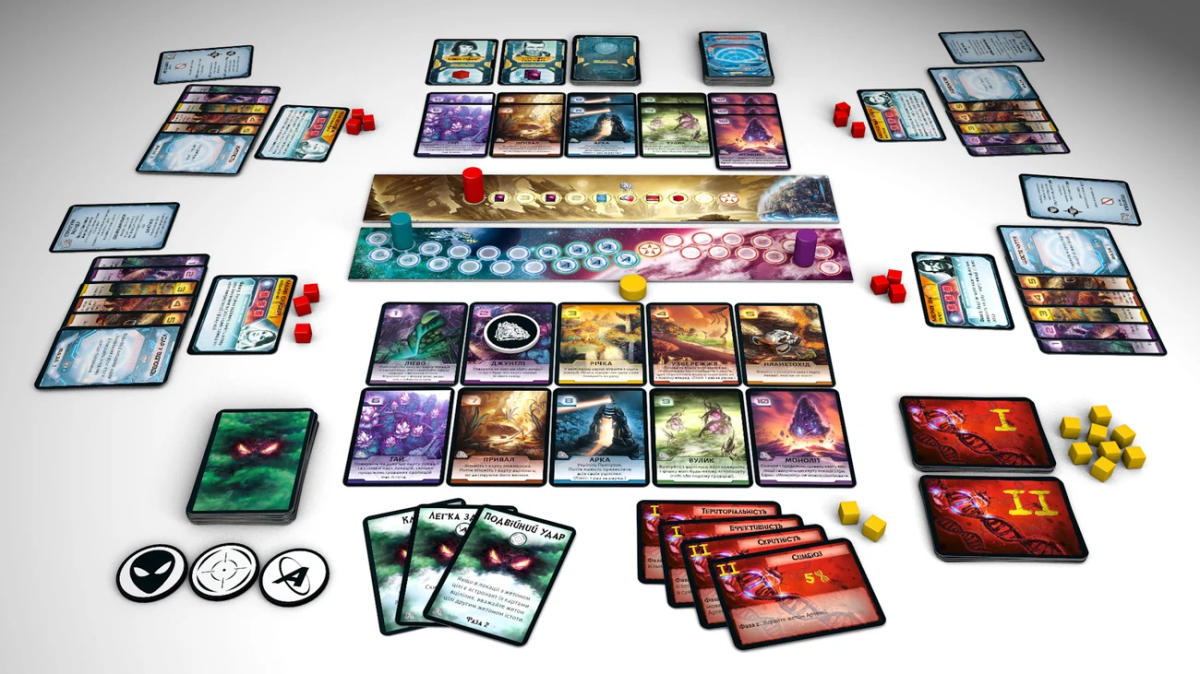 - Адаптации и фишки ДНК. Карты уникальных способностей существа. С помощью фишек ДНК существо развивает свои способности.