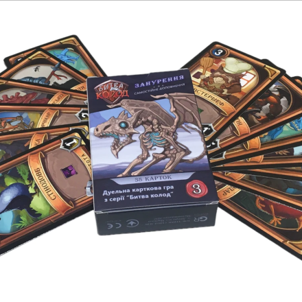 «Битва колод. Погружение» - самостоятельная дуельная карточная игра, которая может быть соединена с другими наборами серии для эпических сражений между двумя игроками, или же в соло-режиме. Стильные рисунки, ностальгическая механика и наконец-то украинский текст на картах.