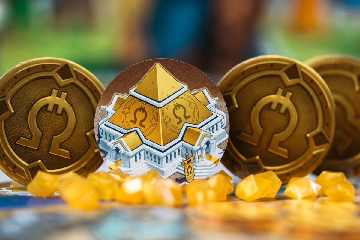 - Создание. Вы можете построить здание, наделяющее вас дополнительными возможностями, храм, придающий победный жетон, или создать орихалковый медальон из 5 самородков орихалка, который приносит победное очко.