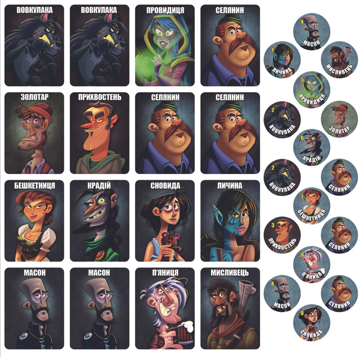 - Вор – ночью вор может ограбить другого игрока, обменявшись с ним картами ролей.