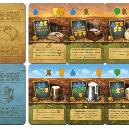 Игра «Пиво и хлеб» продлится шесть раундов, которые через один будут воплощать урожайные и засушливые годы. На самом деле, Гикач делил бы их парами, потому что обновление карт и сброс рецептов происходит после засушливого года, второго в паре. Да и тактически они взаимосвязаны.
