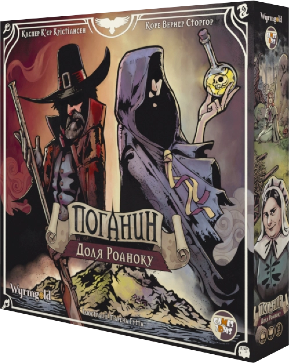 «Поганин: судьба Роанока» – это асимметричная дуэльная игра на дедукцию, в которой один игрок станет ведьмой, а другой – ведьмоловом. В течение игры участники будут выполнять общие и особые действия на пути к индивидуальной цели – ведьмолов будет пытаться разоблачить настоящую ведьму среди девяти попавших под подозрение поселян и обречь ее на казнь, а ведьма будет собирать тайны, необходимые для проведения могущественного обряда.