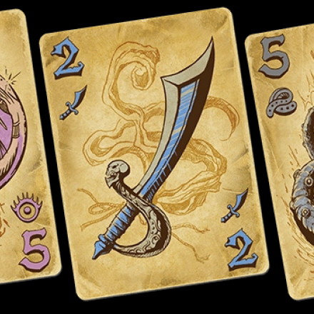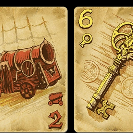 - Пушка отправляет верхнюю карту из любой стопки соперника в сброс, а сабля – добавляет ее в игровую зону, но можно выбрать только такую масть, которой нет среди вашей добычи.