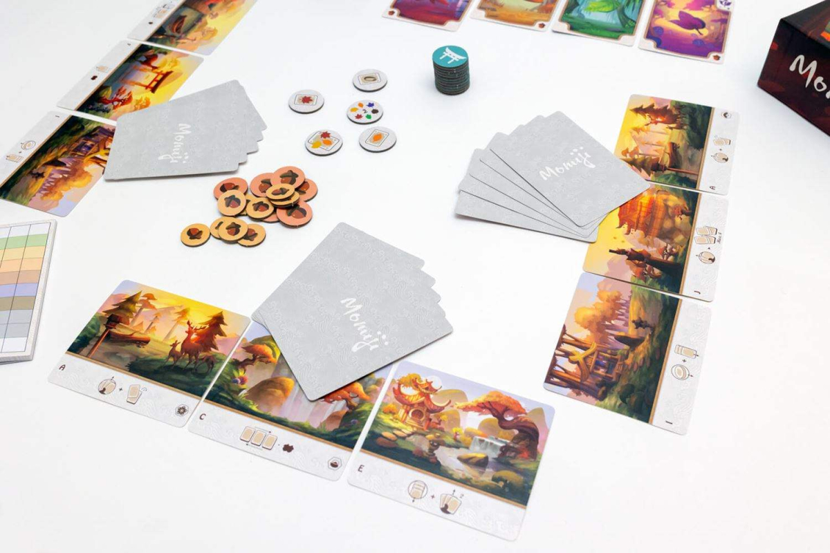 В игре «Momiji» игроки будут собирать сеты карт, стараясь как можно эффективнее использовать панорамные карты пейзажей. Играть можно как компанией, так и в одиночку.
