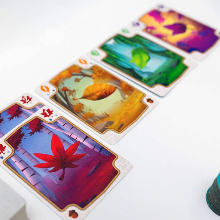 В начале игры каждый участник случайным образом получает 6 карт листьев с цифрами от 0 до 3, три панорамных карты и жетоны желудей. Еще 4 карты листьев и жетоны целей размещаются в центре стола лицом вверх.