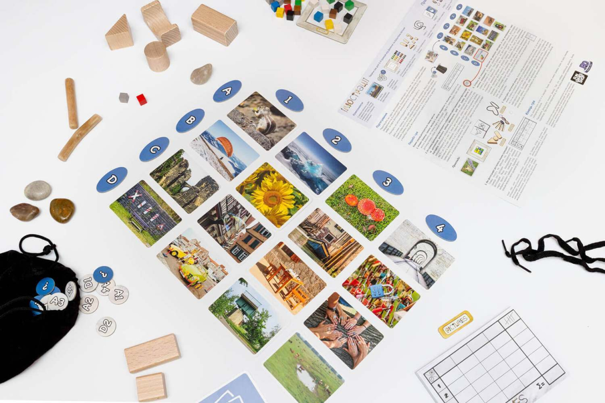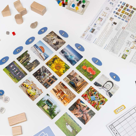 В начале партии участники выкладывают на стол квадрат 4 на 4 из карт с картинками. С помощью жетонов с цифрами и буквами (как в игре «Морской бой») отмечают ряды и столбики. Затем все участники вытаскивают из мешочка по жетону, который указывает, какую именно карту им предстоит воссоздать. К примеру, вытащив жетон «А4», игроку нужно будет формировать картинку с четвертой карты верхнего ряда.