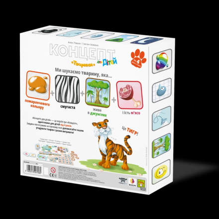 Перед вами игра-номинант на премию детской игры 2019 года, быстрая кооперативная версия заслуженно популярной игры «Concept» для младших игроков. Это игра для совместного занятия детей и взрослых, в которой обычно дети придумывают подсказки для слова-разгадки.