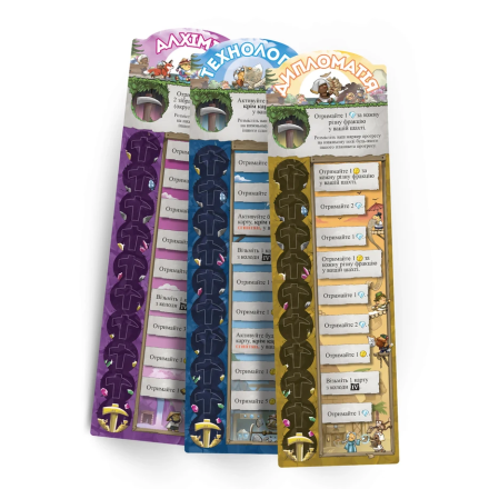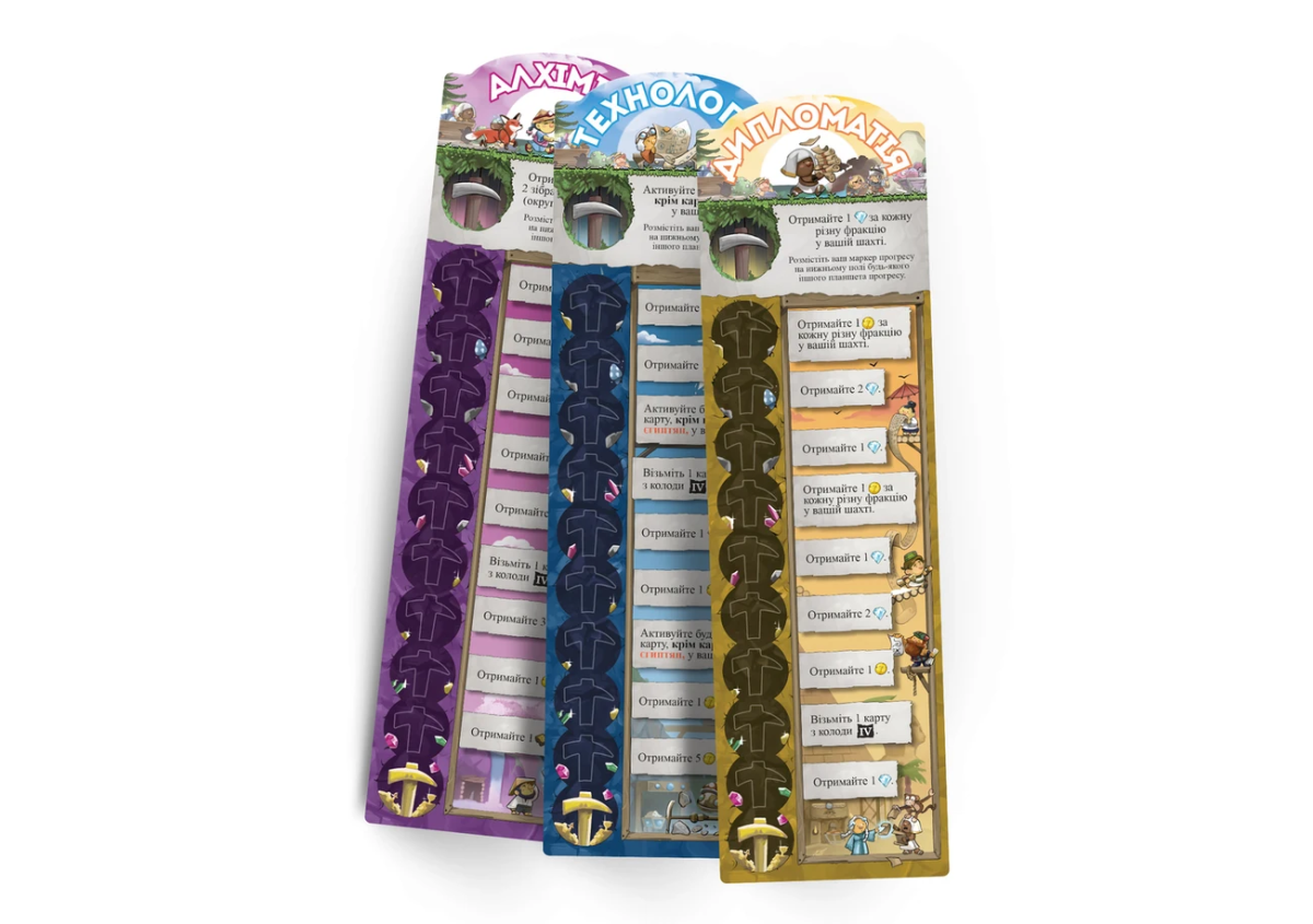 Удачная комбинация разнообразных эффектов карт позволяет выстроить собственную стратегию. Еще одной важной частью игры являются планшеты прогресса, продвижение по которым предоставляет специальные бонусы.