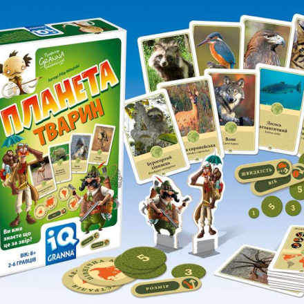 В ходе игры нужно будет определять, кто из животных дольше живет, или быстрее бегает, или больше по размеру. Также игроки узнают на каких континентах живут животные. Азартный игровой процесс позволит запомнить больше о фауне нашей планеты. Это отличный подарок одноклассникам или для семьи с детьми от 8 лет.