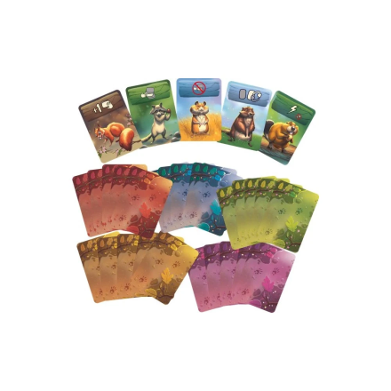 Каждый игрок получает пять карт зверей. Каждый раунд два животных будут выбраны для поиска вкусностей. Каждое животное имеет свои уникальные свойства: