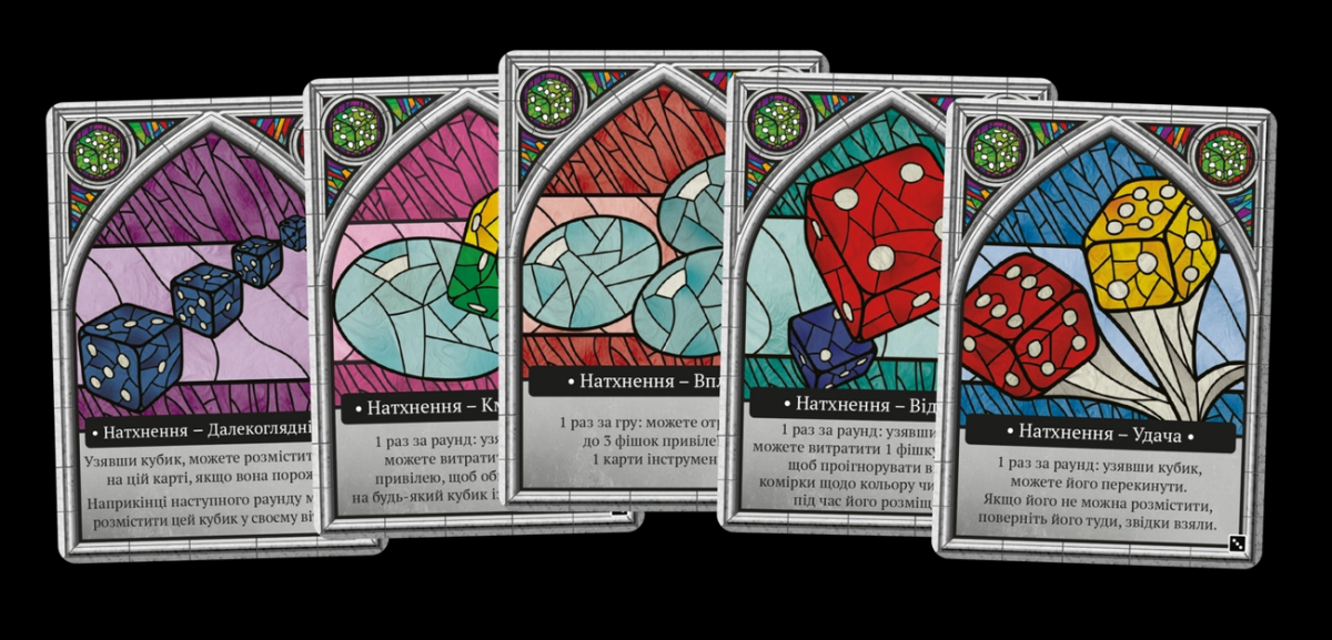 Перед началом партии игроки получают по одной карте вдохновения. Способности таких карт можно использовать в любой момент хода — некоторые один раз за раунд, а некоторые — один раз за всю игру.